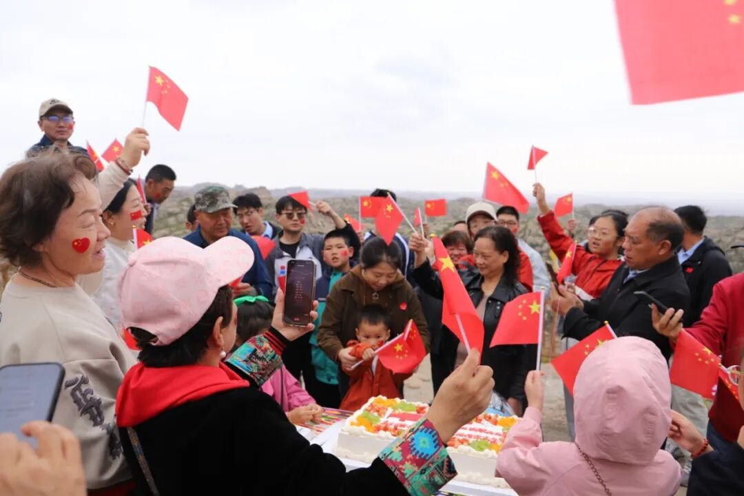 新疆怪石峪景區舉辦的"我在祖國最西北為祖國慶生"登山活動吸引眾多游客參與。
