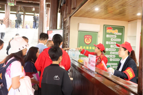 與此同時,各志愿服務點同步推進文明旅游宣傳,通過發放宣傳資料與趣味知識問答相結合的方式,將文明旅游規范轉化為“答對有禮”的互動體驗,催生了“文明打卡”的新風尚。當日共計發放文明旅游宣傳手冊530余份,吸引了320余名游客積極參與。